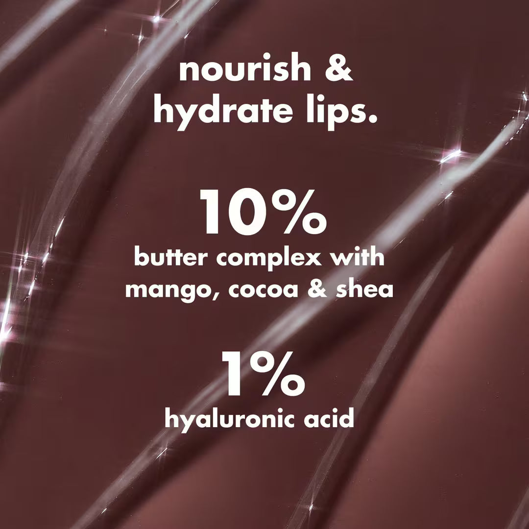 Formulated with a 10% butter blend plus a Hyaluronic acid blend, this richly hydrating tinted lip balm melts into lips and leaves them feeling soft and supple.
